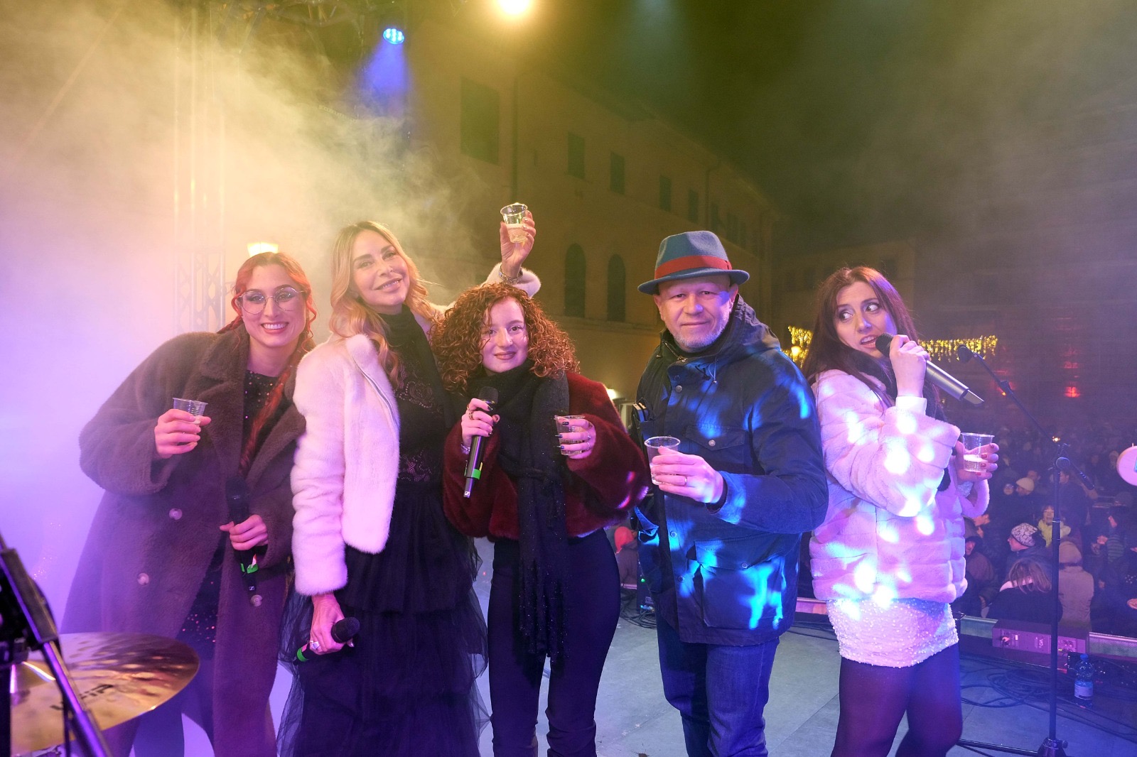 Oltre mille persone hanno invaso Piazza del Popolo a San Miniato per festeggiare l’arrivo del nuovo anno. Il grande spettacolo dell’ultimo dell’anno, organizzato dal Comune di San Miniato e dalla Fondazione San Miniato Promozione, con il sostegno della Fondazione CRSM, Essenza e l'Azienda Speciale Farmacie, ha dato vita ad una serata ricca di musica e divertimento, grazie alla presenza di un’ospite amatissima dal pubblico italiano: Stefania Orlando, Ambasciatrice del tartufo, ha portato il suo carisma e la sua verve in uno show coinvolgente che ha accompagnato San Miniato nel conto alla rovescia verso il 2026. Dalle 22.30 il palco si è acceso con l’energia della band “80 Voglia di 90 e 2000”, che ha accompagnato il pubblico in un emozionante viaggio musicale tra hit ’70, ’80, ’90 e 2000. Ad aprire la serata è stata la giovane cantante Nicole Corrente che, insieme agli altri ospiti, ha acceso gli animi degli oltre mille presenti, venuti in Piazza per festeggiare l’arrivo del 2026.